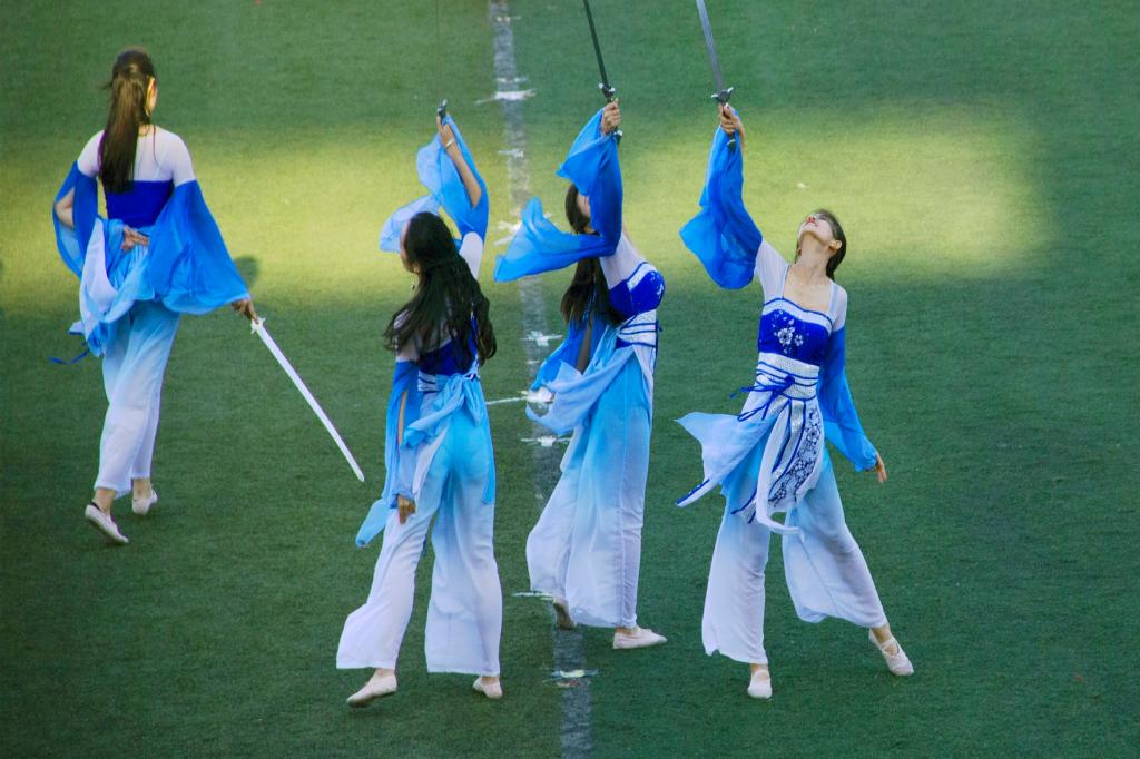 威尼斯官网17级代表队最后上场。在气势恢宏的武侠音乐中,旗手和舞蹈队员们闪亮登场,部分参赛选手随之以十字散开,队形整齐有序,一步到位。旗手们铿锵有力的挥舞着旗帜,曼妙的舞姿、潇洒的挥剑、飘逸的裙摆,赢得了主席台观众们的热烈掌声。随后,在领队的一声令下,太极方阵分别从两边和后方同时进场,并进行迅速调整,俨然有序、整装待发。太极音乐响起后,队员们合着音乐的节拍起势、转身、俯身下按,个个挥洒自如,连贯有序。同学们将太极拳含蓄内敛、以柔克刚、急缓相间的拳术风格淋漓尽致地展现在裁判眼前,就如“一匹匹野马在整齐分鬃,一个个白鹤在舒缓展翅。”值得一提的是,威尼斯官网队员脸上的地球标识格外引人注目,新颖有趣。队员们的动作娴熟自如,队列整齐划一,完美地诠释了中国传统太极拳的独特魅力。最终,威尼斯官网在本次太极拳比赛中荣获第八名。
